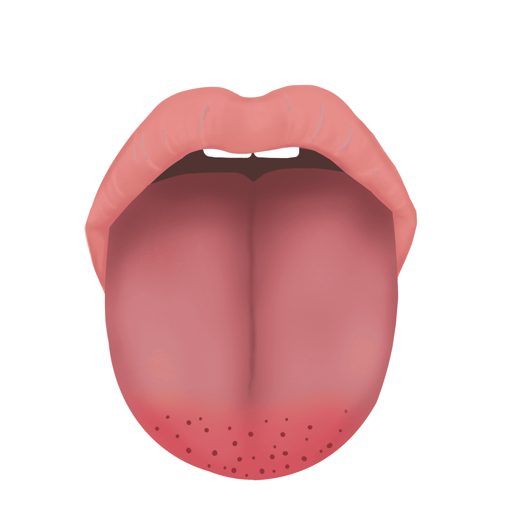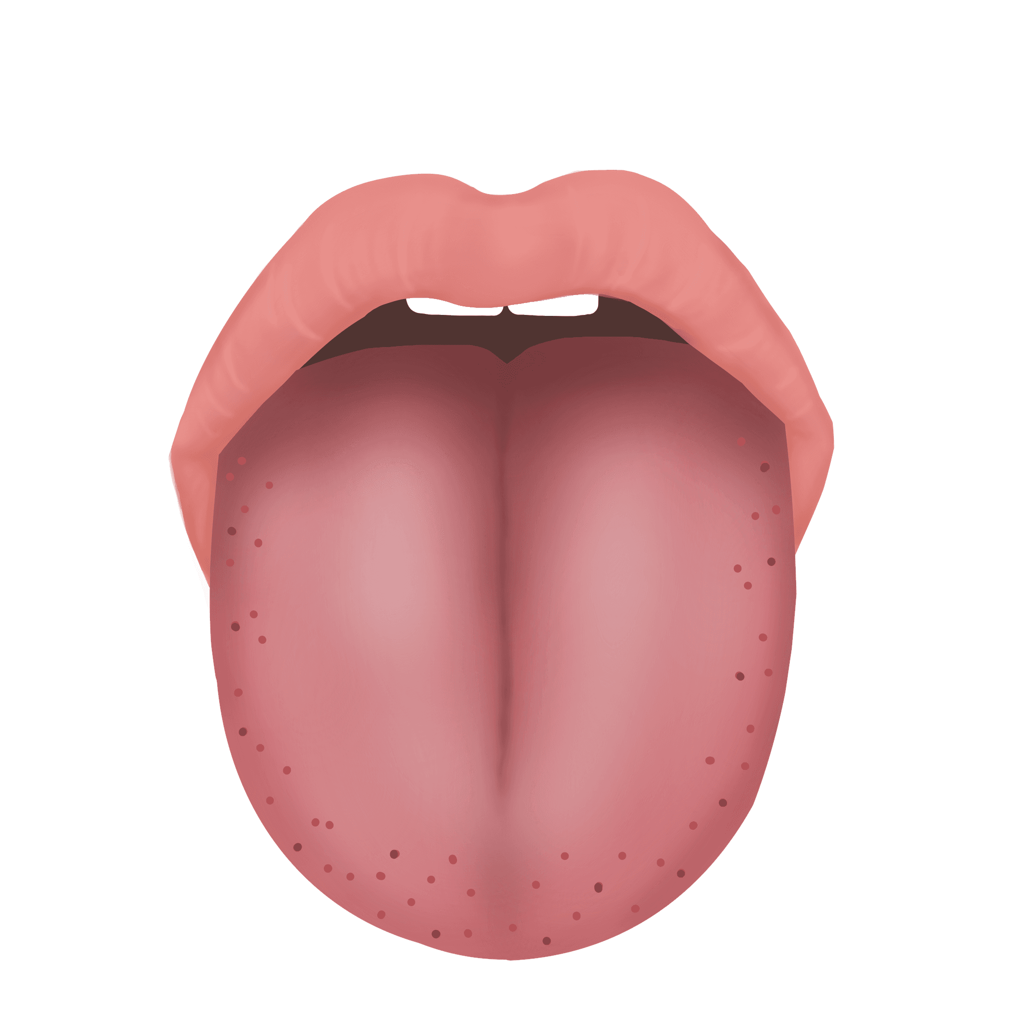 혀의 특징: 혀 가장자리를 따라 혀가 붉거나, 붉은 점이 나타납니다