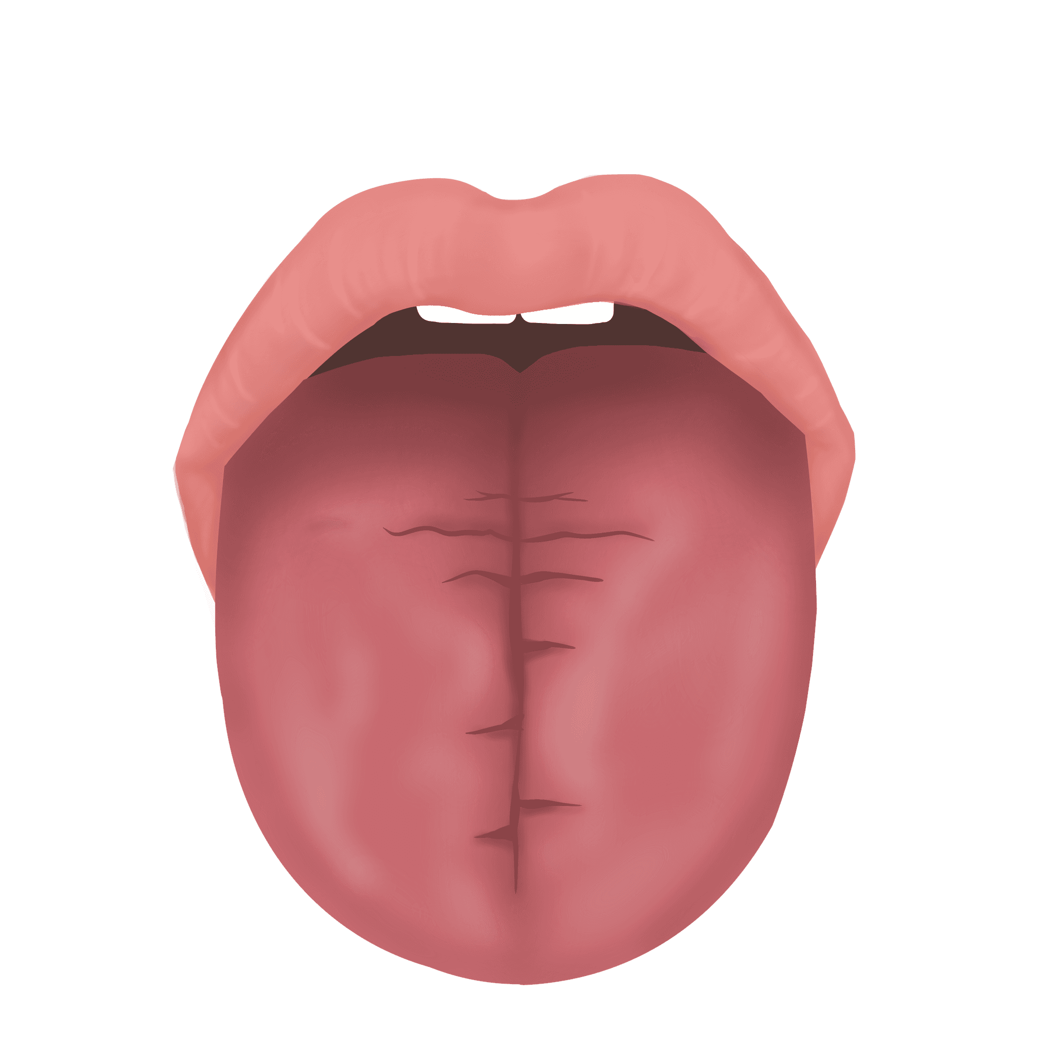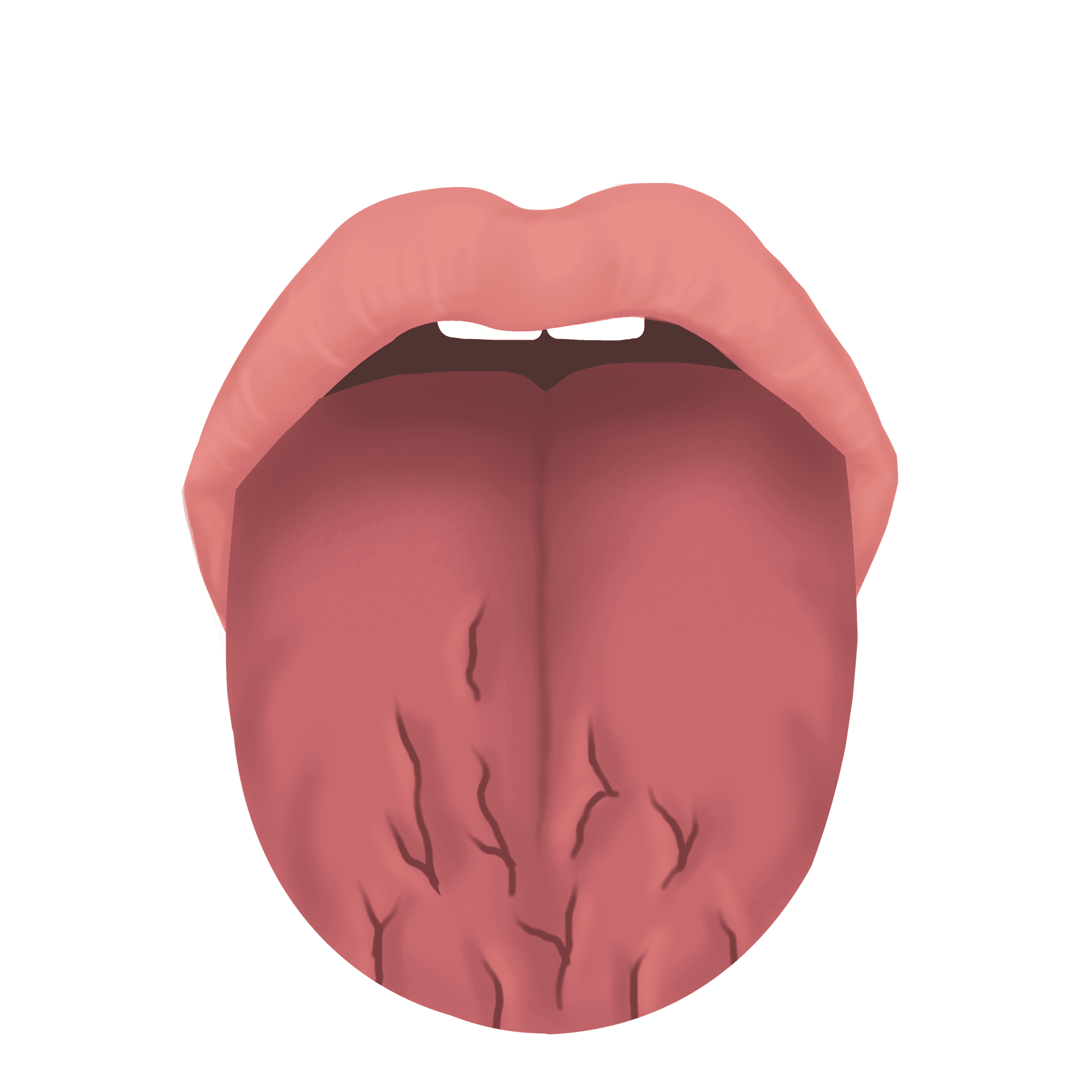 혀의 특징: 혀의 가로 갈라짐 또는 세로로 갈라짐이 나타납니다